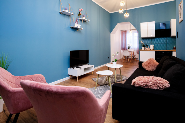 Piękne mieszkanie stylizowane na wczesne czasy PRL. Do dyspozycji Gości są dwa pokoje, kuchnia i łazienka.