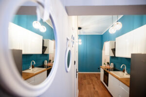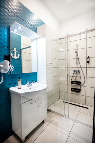 Apartament w Kruszwicy. Lokal czteroosobowy 60 Mk. sypialnia, salon z kuchnią, łazienka i garderoba. Do dyspozycji gości jest ; pralka, suszarka, żelazko, telewizor, Aneks kuchenny wyposażony w sztućce, naczynia, garnki, kuchenkę, czajnik, lodówkę, zamrażarkę oraz wszystkie niezbędne akcesoria kuchenne. W łazience znajduje się kabina prysznicowa.