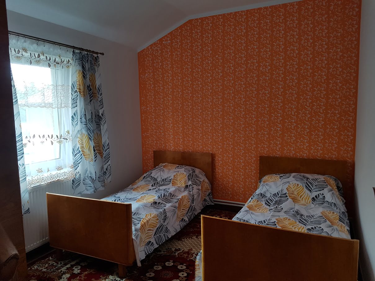 Oferujemy bardzo duży, nowo wybudowany domek całoroczny stylizowany na czasy PRL. Dom składa się z salonu z aneksem kuchennym, dwóch pokoi oraz łazienki. W domu znajdują się gadżety z epoki takie jak aparat analogowy, maszyna do pisania, maszyna do liczenia, stary telefon, telewizor, porcelana z Włocławka, kryształy, pralka Frania i wiele innych. Do domku przynależy zadaszony taras z grillem, ogrodzone miejsce postojowe oraz rozległy sad ze stawem. Idealne miejsce na spokojne, rodzinne wczasy. W pobliżu dwa sklepy spożywcze, możliwość zamówienia obiadów od poniedziałku do piątku.